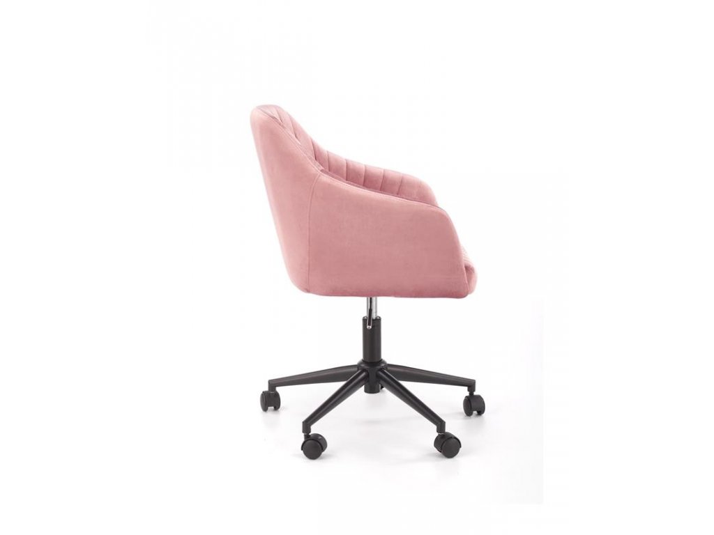 Elegantní dětská otočná židle. Základní mechanismus umožňující nastavení výšky sedáku. Rozměry: 51/54/81-91/42-52 cm, materiál: sametová látka, barva: růžová