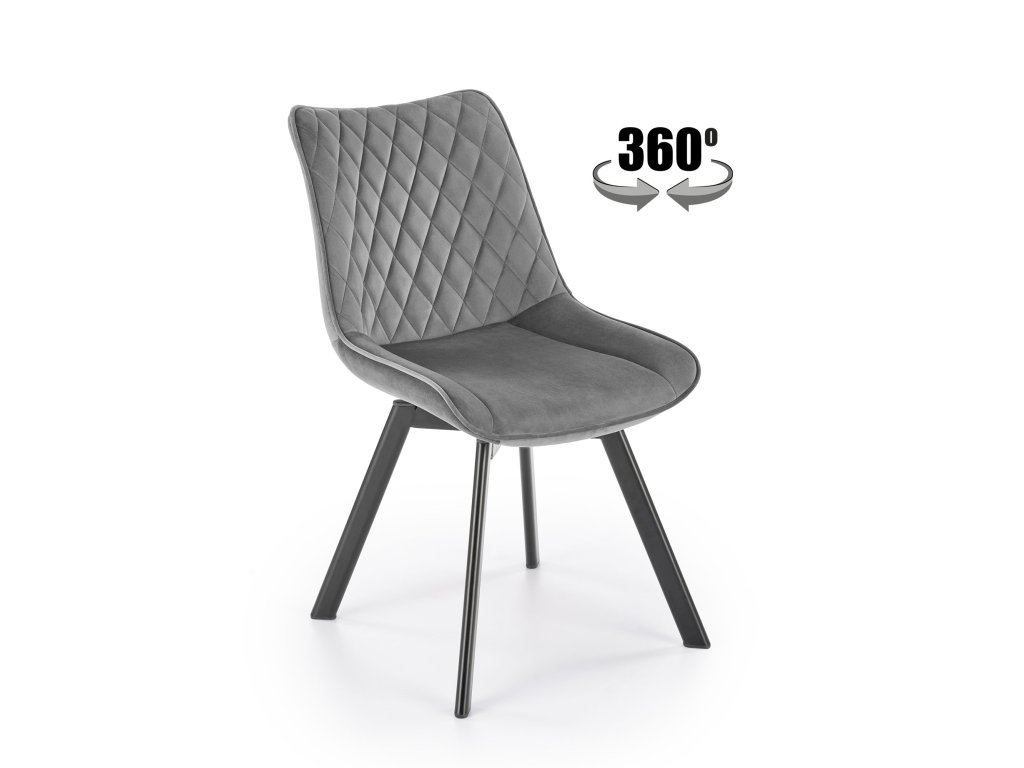 Elegantní kovová jídelní židle s funkcí otáčení o 360°, rozměry: 45/63/80/42 cm, materiál: sametová látka/práškově lakovaná ocel, barva: tmavě šedá