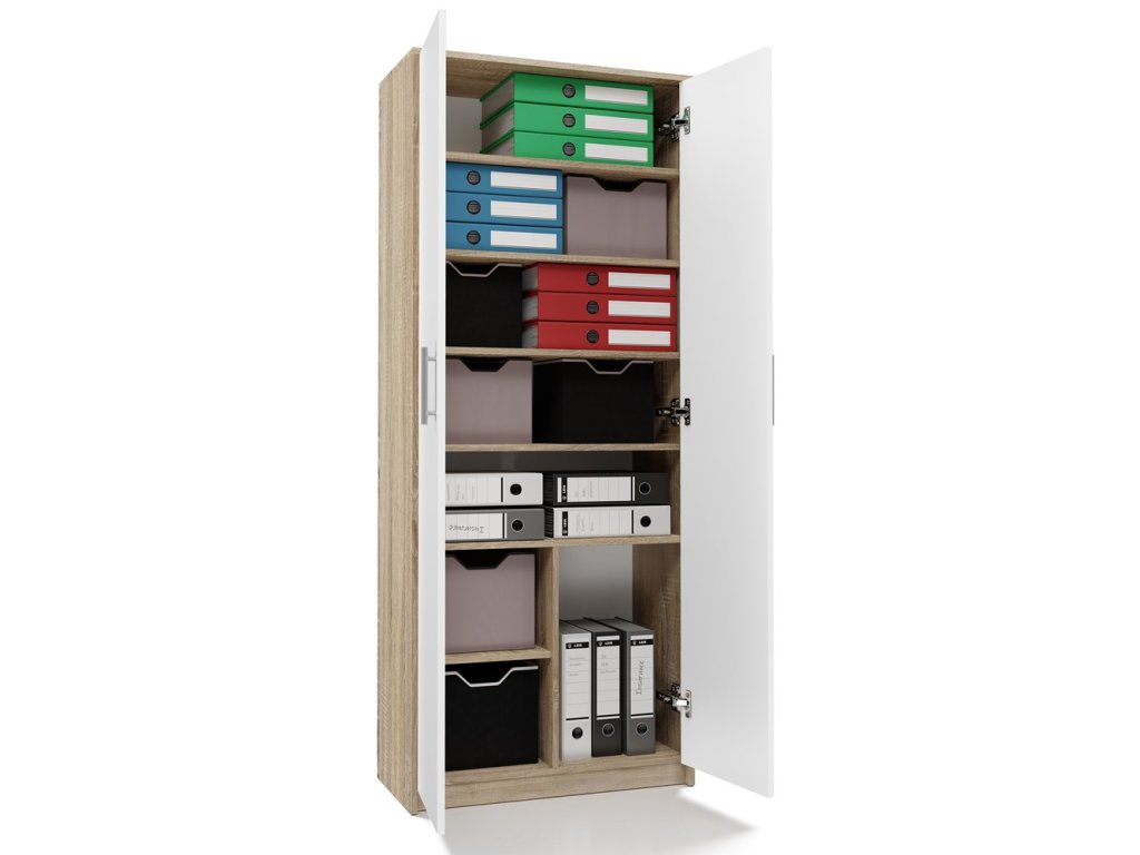 Kancelářská skříň Olina v moderním designu je praktický kus nábytku, který bude fungovat všude tam, kde ho budete potřebovat. Najde si své místo jak v pracovně, ateliéru, tak i v obývacím nebo dětském pokoji. Skříň je vyrobena z nejkvalitnější laminované desky odolné proti poškrábání a vlhkosti, hrany jsou povrchově upraveny ABS.