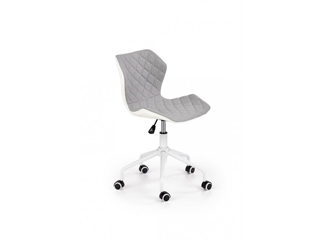 Elegantní dětská otočná židle. Základní mechanismus umožňující nastavení výšky sedáku. Rozměry: 48/57/79-88/46-55 cm, materiál: látka/eko kůže, barva: šedá/bílá