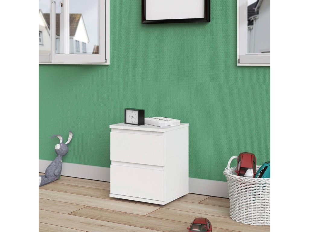 Noční stolek je nezbytným vybavením každé ložnice, dětského nebo studentského pokoje i pokoje pro hosty. Je nepostradatelným společníkem u postele a poskytuje úložný prostor pro vše, co potřebujete mít na dosah ruky a také odkládací prostor např.na lampičku nebo budík. Noční stolek Nibby Vaši ložnici krásně doplní a svoji funkci bude plnit na výbornou. Stolek je vyrobený z lamina, které se snadno udžuje. Při výrobě je kladen důraz na ekologii takže je vyráběný v souladu s ohledy na životní prostředí. Stolek je dodávaný v demontu a součástí balení je montážní návod včetně potřebných spojovacích prvků. Vyobrazené dekorace nejsou v ceně.