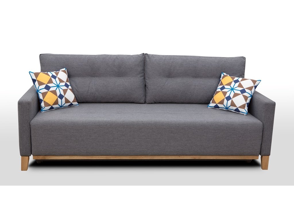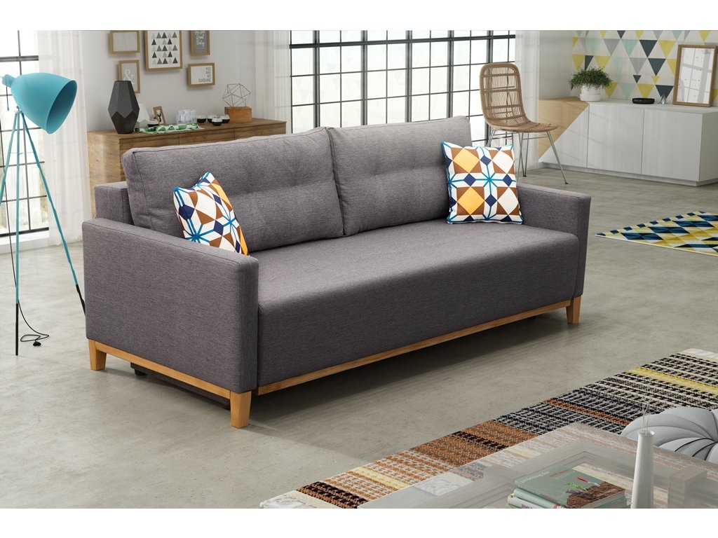 Pohovka Aristo ve skandinávském designu zaujme především svým jednoduchým a funkčním zpracováním. Pohovka je rozkládací a samozřejmostí je i úložný prostor, který poslouží např. na lůžkoviny. Jednoduchým rozložením pomocí automatu, získáte lůžko k příležitostnému přespání Vaší návštěvy. Návod na rozložení můžete shlédnout v krátkém gifu v doplňkových fotografiích. Naleznete tam také detailní rozměry pohovky. Pohodlí při sezení zajišťuje výplň sedáku, která je složena z pružin bonell a kvalitní PUR pěny a také opěrné polštáře, které jsou odnímatelné a můžete si je přizpůsobit podle svých potřeb. Pohovku nabízíme v několika barevných provedeních. Úvodní fotografie je ilustrační. Pohovka bude dodána v potahové látce Inari 23. Vzorek látky je vyobrazen v doplňkových fotografiích. Moření dřeva není možno zvolit. V ceně pohovky jsou 2 malé vzorované polštářky, které jsou vyobrazené na fotografii. Ostatní vyobrazené doplňky a dekorace nejsou v ceně.