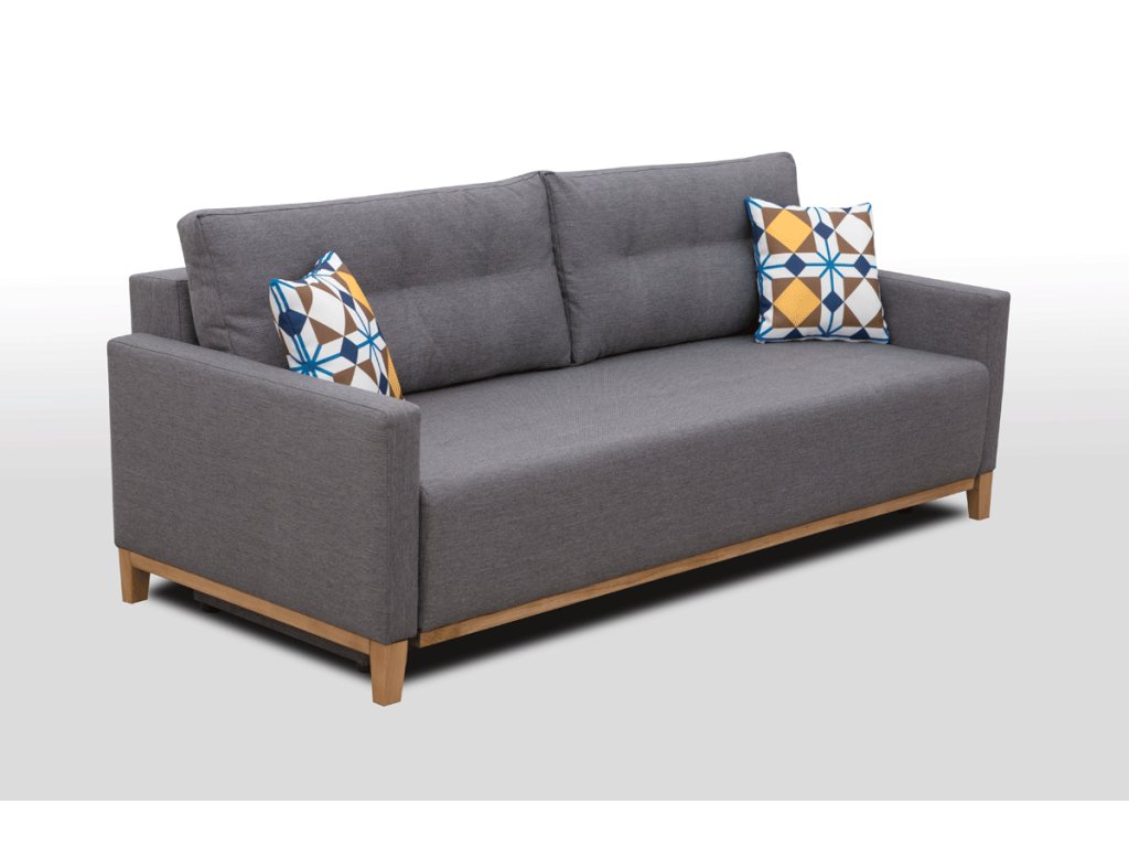 Pohovka Aristo ve skandinávském designu zaujme především svým jednoduchým a funkčním zpracováním. Pohovka je rozkládací a samozřejmostí je i úložný prostor, který poslouží např. na lůžkoviny. Jednoduchým rozložením pomocí automatu, získáte lůžko k příležitostnému přespání Vaší návštěvy. Návod na rozložení můžete shlédnout v krátkém gifu v doplňkových fotografiích. Naleznete tam také detailní rozměry pohovky. Pohodlí při sezení zajišťuje výplň sedáku, která je složena z pružin bonell a kvalitní PUR pěny a také opěrné polštáře, které jsou odnímatelné a můžete si je přizpůsobit podle svých potřeb. Pohovku nabízíme v několika barevných provedeních. Úvodní fotografie je ilustrační. Pohovka bude dodána v potahové látce Inari 91. Vzorek látky je vyobrazen v doplňkových fotografiích. Moření dřeva není možno zvolit. V ceně pohovky jsou 2 malé vzorované polštářky, které jsou vyobrazené na fotografii. Ostatní vyobrazené doplňky a dekorace nejsou v ceně.