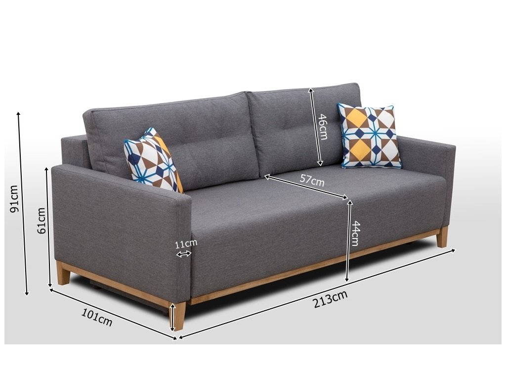 Pohovka Aristo ve skandinávském designu zaujme především svým jednoduchým a funkčním zpracováním. Pohovka je rozkládací a samozřejmostí je i úložný prostor, který poslouží např. na lůžkoviny. Jednoduchým rozložením pomocí automatu, získáte lůžko k příležitostnému přespání Vaší návštěvy. Návod na rozložení můžete shlédnout v krátkém gifu v doplňkových fotografiích. Naleznete tam také detailní rozměry pohovky. Pohodlí při sezení zajišťuje výplň sedáku, která je složena z pružin bonell a kvalitní PUR pěny a také opěrné polštáře, které jsou odnímatelné a můžete si je přizpůsobit podle svých potřeb. Pohovku nabízíme v několika barevných provedeních. Úvodní fotografie je ilustrační. Pohovka bude dodána v potahové látce Inari 27. Vzorek látky je vyobrazen v doplňkových fotografiích. Moření dřeva není možno zvolit. V ceně pohovky jsou 2 malé vzorované polštářky, které jsou vyobrazené na fotografii. Ostatní vyobrazené doplňky a dekorace nejsou v ceně.
