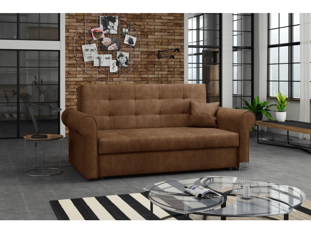 Rozkládací pohovka Vivian je díky svým rozměrům vhodná i do menších pokojů. Své uplatnění najde nejen v obývacím pokoji, ale také v dětském, studentském, nebo hostinském pokoji. Jednoduchým rozložením pomocí automatu, získáte lůžko k příležitostnému přespání Vaší návštěvy. Výplň sedáku tvoří vlnité pružiny v kombinaci s PUR pěnou. Pohovka je potažena kvalitní látkou a nabízíme ji v několika trendy odstínech. Pohovka disponuje i nepostradatelným úložným prostorem, který využijete např. na deku a polštář. V ceně pohovky je 1 dekorační polštář. Ostatní vyobrazené dekorace nejsou v ceně.