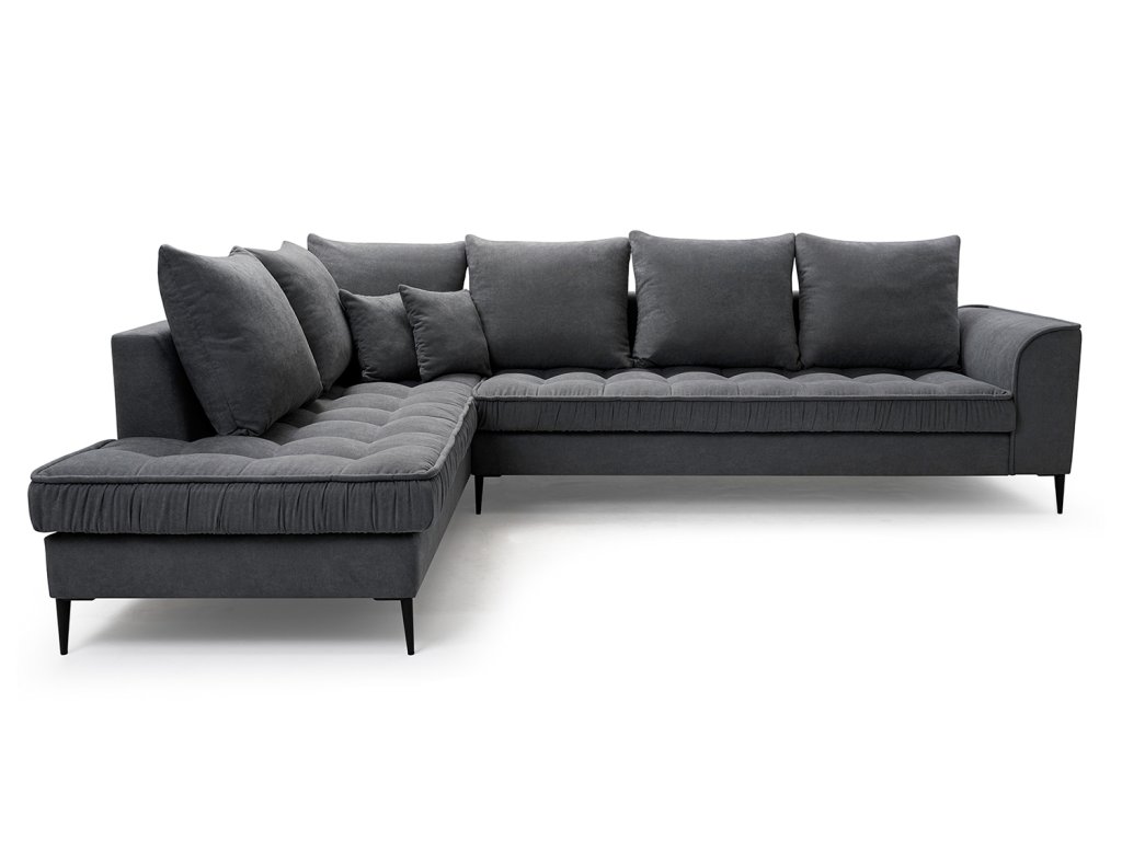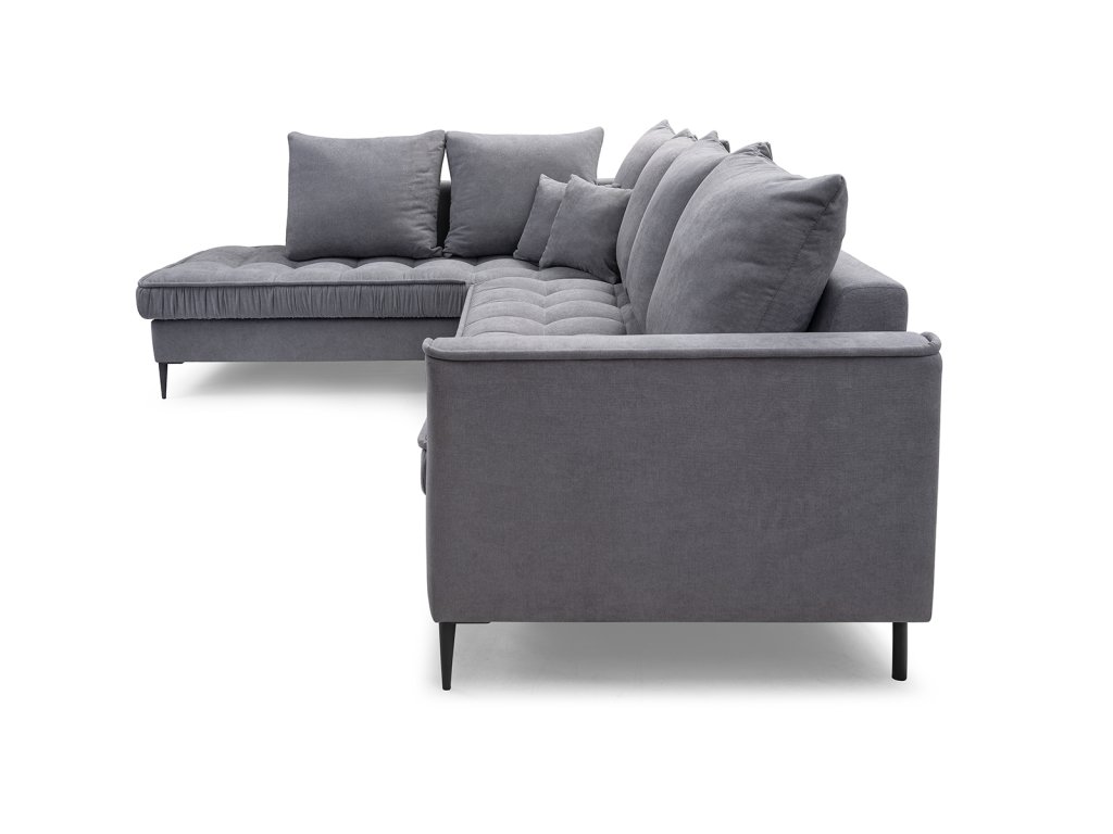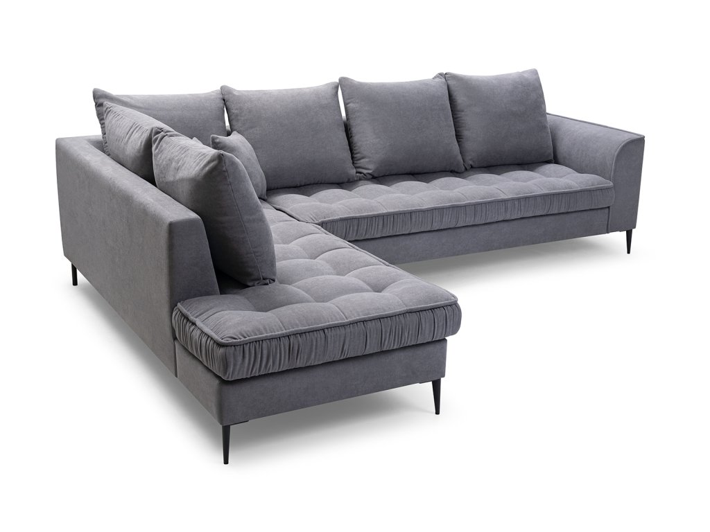 Polštáře jsou velmi pohodlnou součástí sedacích souprav. Jejich velké množství symbolizuje dokonalý relax. Sedací souprava Lidie je tedy pro ty, kteří si rádi užijí relax nejen po náročném dni, skvělou volbou. Její vzhled zaujme každou návštěvu. Prošívání sedáku a kovové nožky sedací soupravě přidává na eleganci. Všechny polštáře jsou volně ložené a můžete je přizpůsobit svému pohodlí. Výplň sedáku tvoří pružiny typu faliste v kombinaci s pěnou T30 a HR 35/45. Sedací souprava je celočalouněná, takže ji můžete umístit do prostoru. Sedací souprava není rozkládací, ale po sejmutí polštářů, vznikne dostatečně velký prostor k občasnému přespání. Cena je uvedena za sedací soupravu včetně polštářů. Vyobrazené dekorace nejsou v ceně. Sedací soupravu nabízíme v levém, nebo pravém provedení.