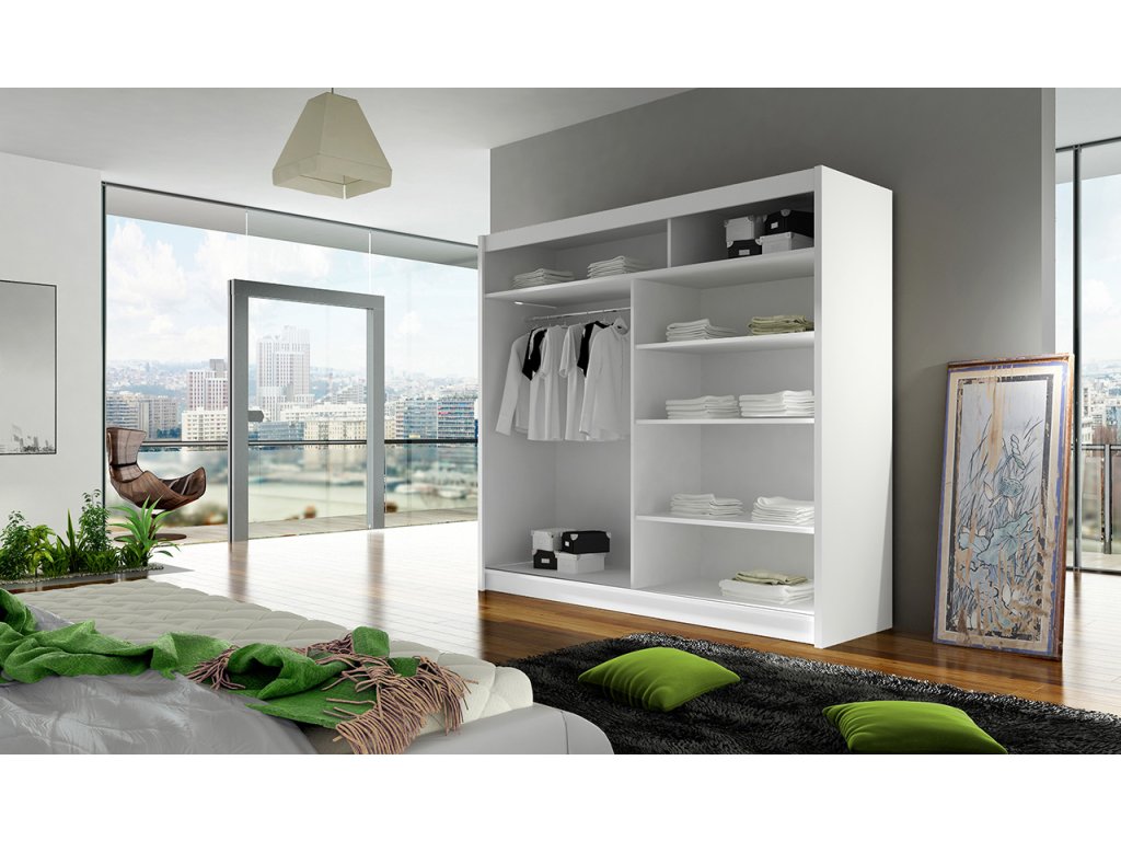 Skříň Berger s posuvnými dveřmi, je vyrobena z kvalitního lamina o síle 16 mm a hrany jsou ukončeny ABS lištou. Vodící lišty jsou vyrobeny z odolného hliníku a splňují požadavky pro každodenní užívání. Skříň je doplněna zrcadlem, které jí dodává elegantní vzhled a místnost opticky zvětší a prosvětlí. Nabízíme ji ve čtyřech odstínech. Díky svým rozměrům a uspořádání poskytuje dostatek úložného prostoru. Skříň je dodávána v demontu a součástí je montážní plánek včetně všech potřebných spojovacích materiálů. Vyobrazené dekorace nejsou v ceně. Skleněné zrcadlo je součástí skříně.