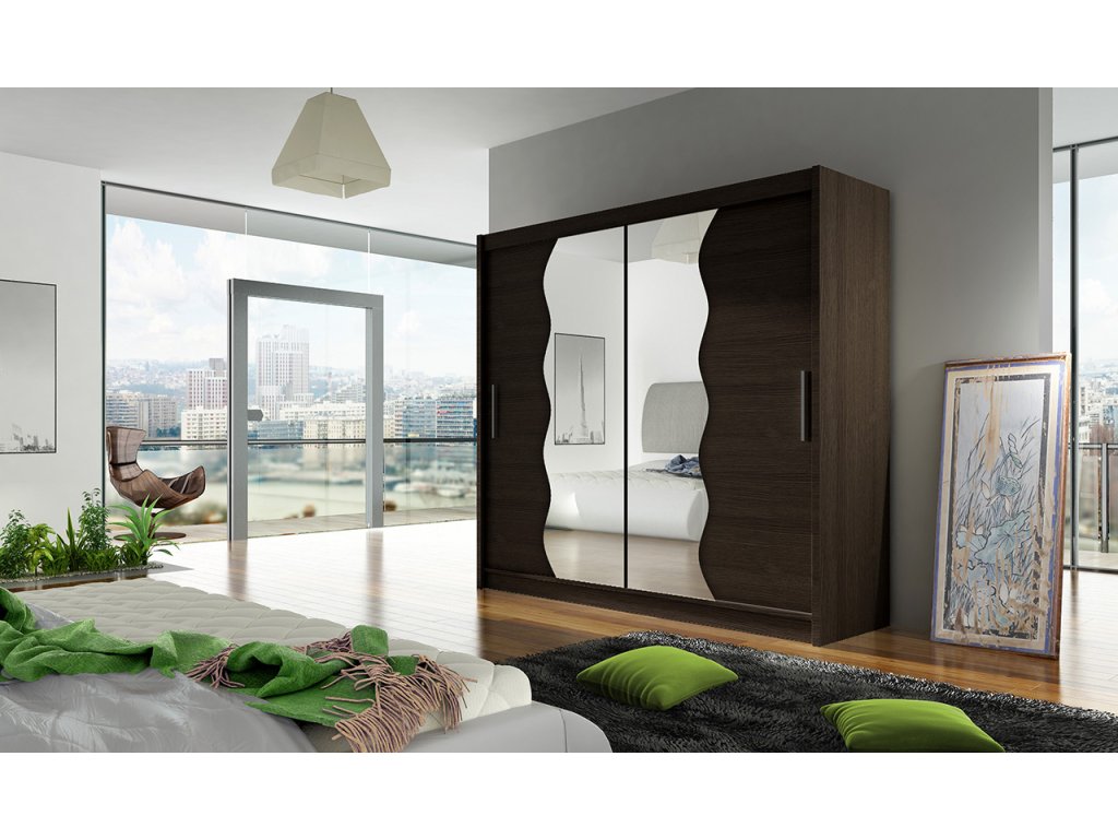 Skříň Berger s posuvnými dveřmi, je vyrobena z kvalitního lamina o síle 16 mm a hrany jsou ukončeny ABS lištou. Vodící lišty jsou vyrobeny z odolného hliníku a splňují požadavky pro každodenní užívání. Skříň je doplněna vlnitými zrcadly, která jí dodávají elegantní vzhled a místnost opticky zvětší a prosvětlí. Nabízíme ji ve čtyřech odstínech. Díky svým rozměrům a uspořádání poskytuje dostatek úložného prostoru. Skříň je dodávána v demontu a součástí je montážní plánek včetně všech potřebných spojovacích materiálů. Vyobrazené dekorace nejsou v ceně. Skleněná zrcadla jsou součástí skříně.