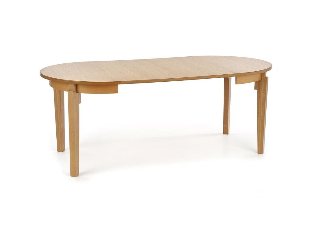 Designový rozkládací stůl, rozměry: 100 ÷ 200/100/77 cm, materiál: MDF + přírodní dubová dýha/masivní bukové dřevo, barva: medový dub